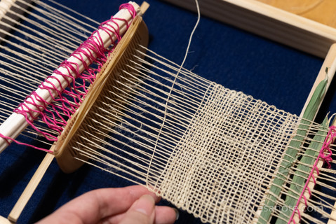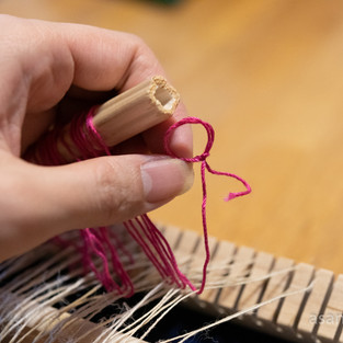 櫛の筬で手前に緯糸を寄せ打ち込みます。
